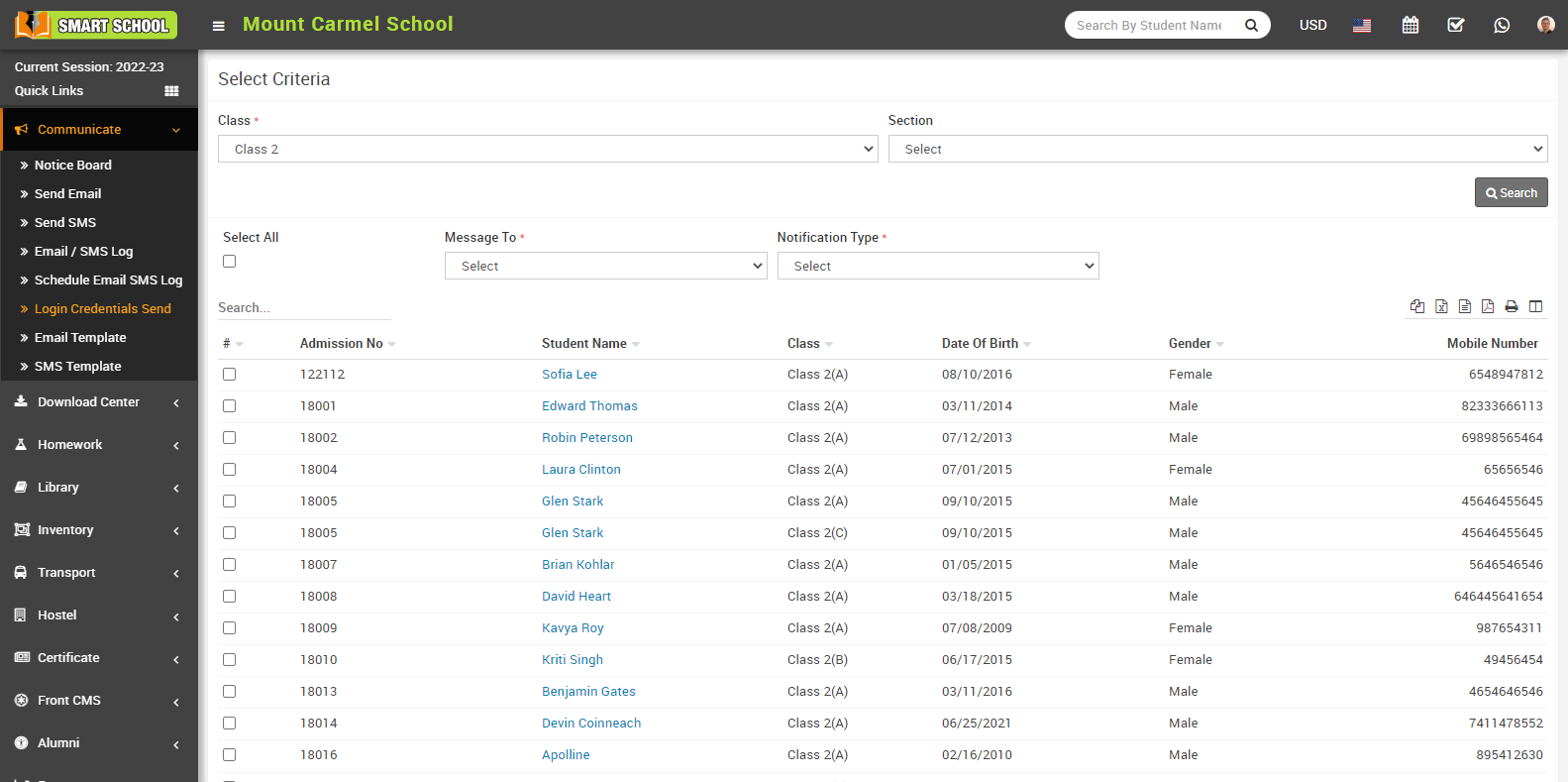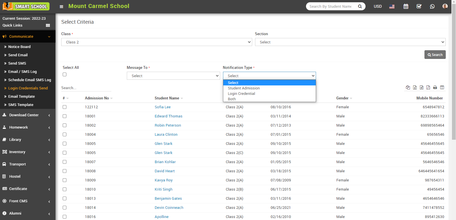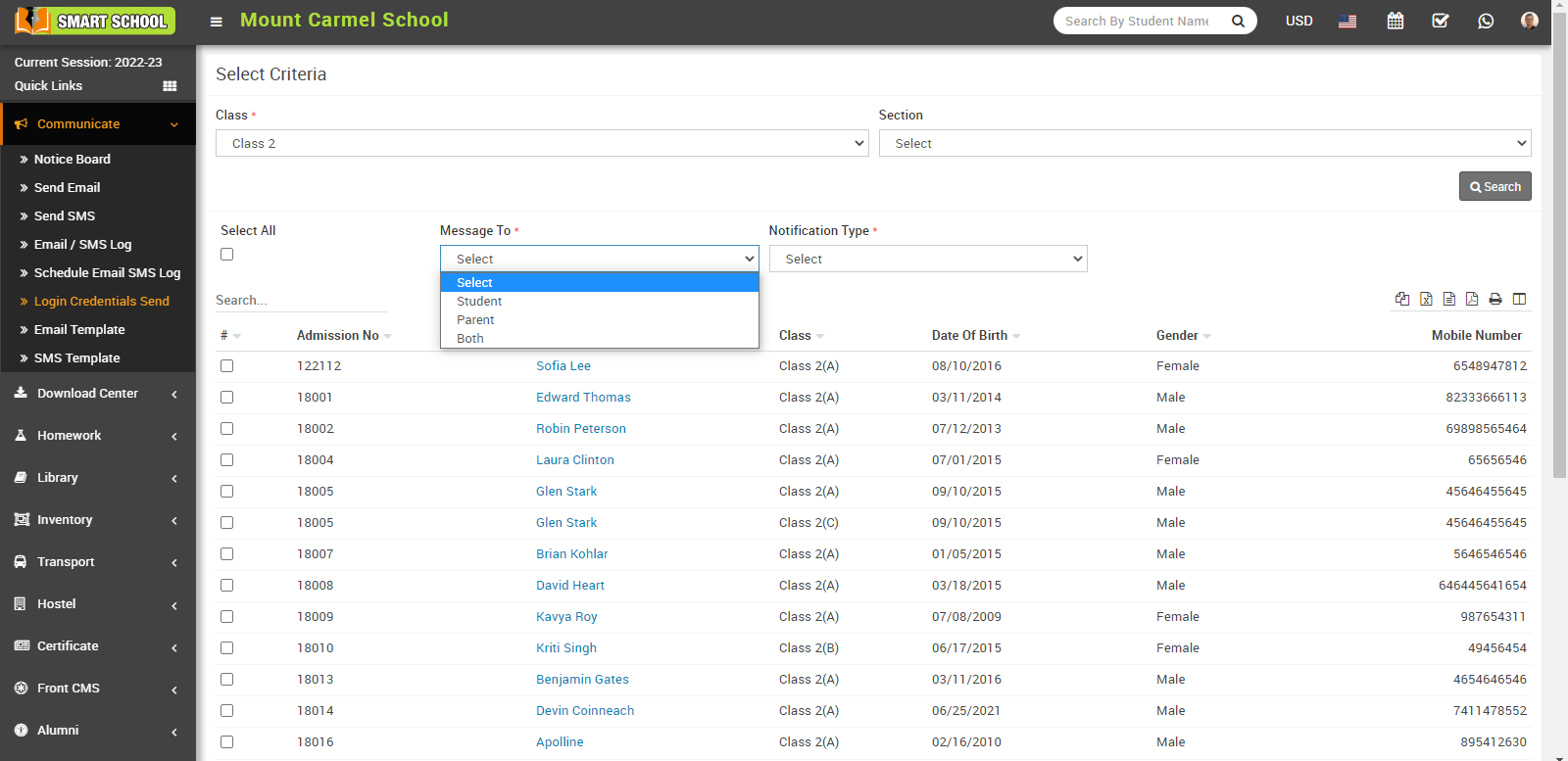 Communicate module workflow- First of all, we will send the message or email by notice board and then the sent message can be checked on the notice board or Email/ SMS log.